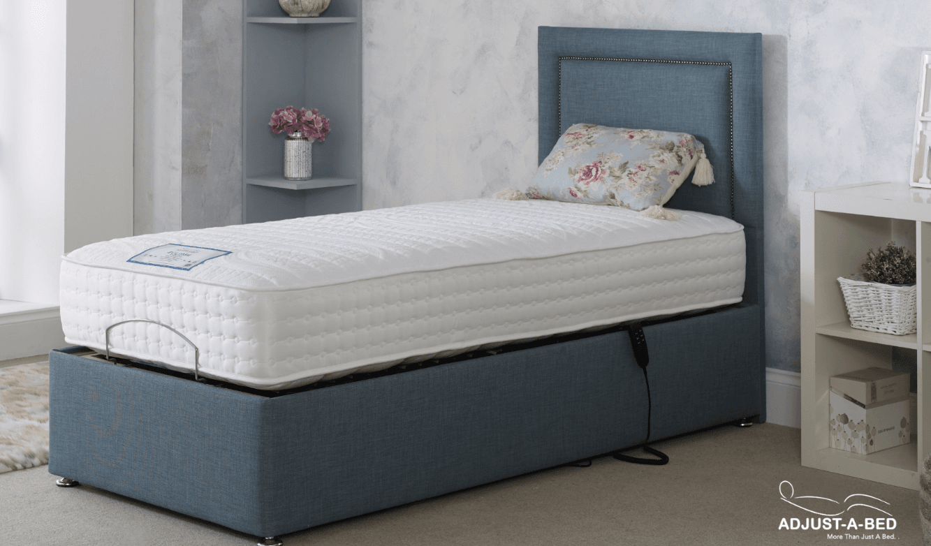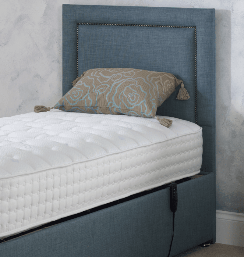 Available to purchase as a mattress only, on a leg base with 6” or 8” legs and with a deep base with 2 drawers – base available in a choice of fabrics & colours – matching headboards also available.