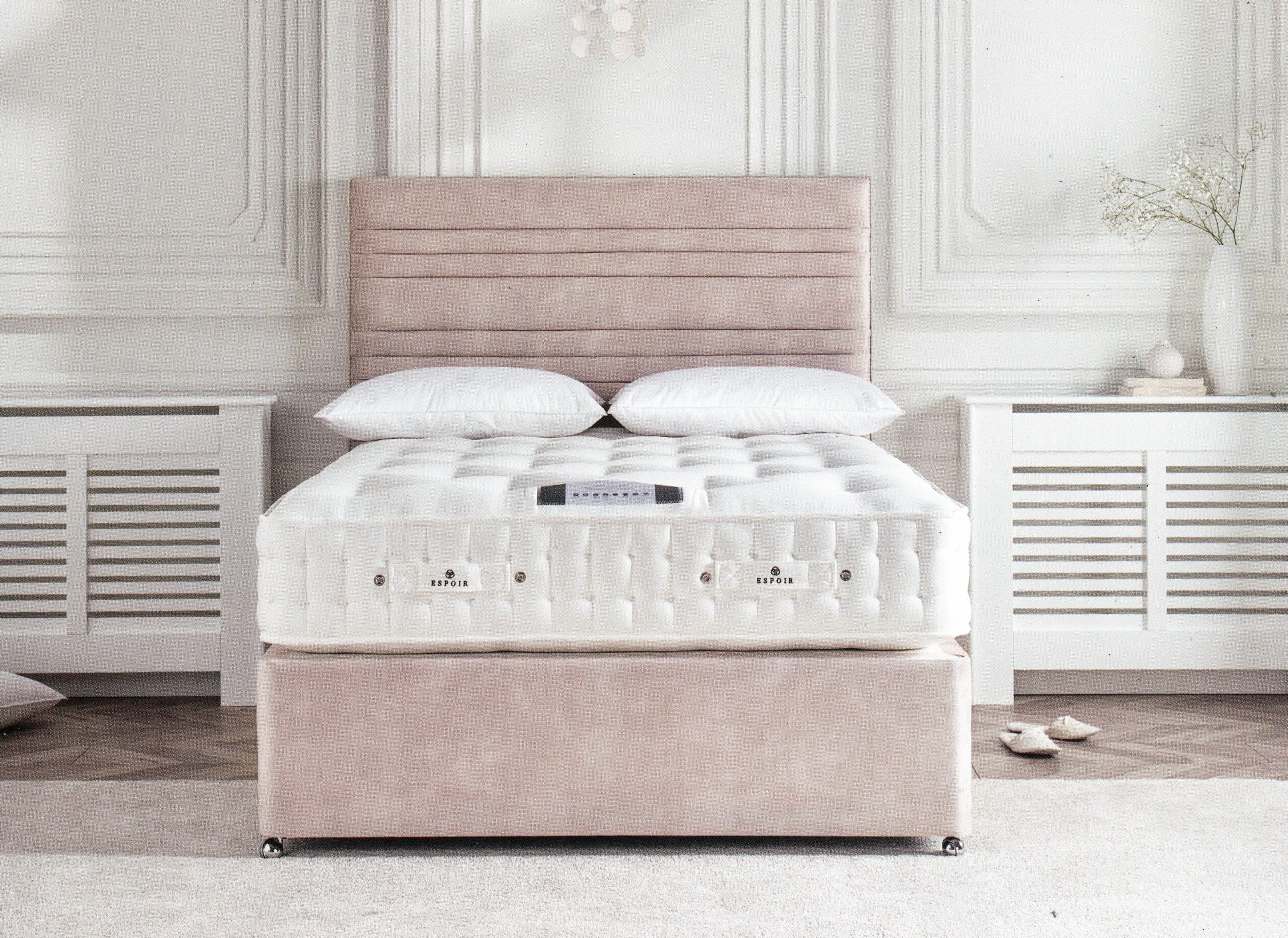 The Ortho Natural 2000 is a sumptuous pocket sprung mattress, with luxury natural fillings including cotton. This has a firm feel, and is hand side-stitched for great edge-to-edge support. It’s dual-sided so you can turn it over and rotate head to foot to extend the longevity of the mattress. The divan base is made from quality timber & finished with sophisticated shepherd castors.