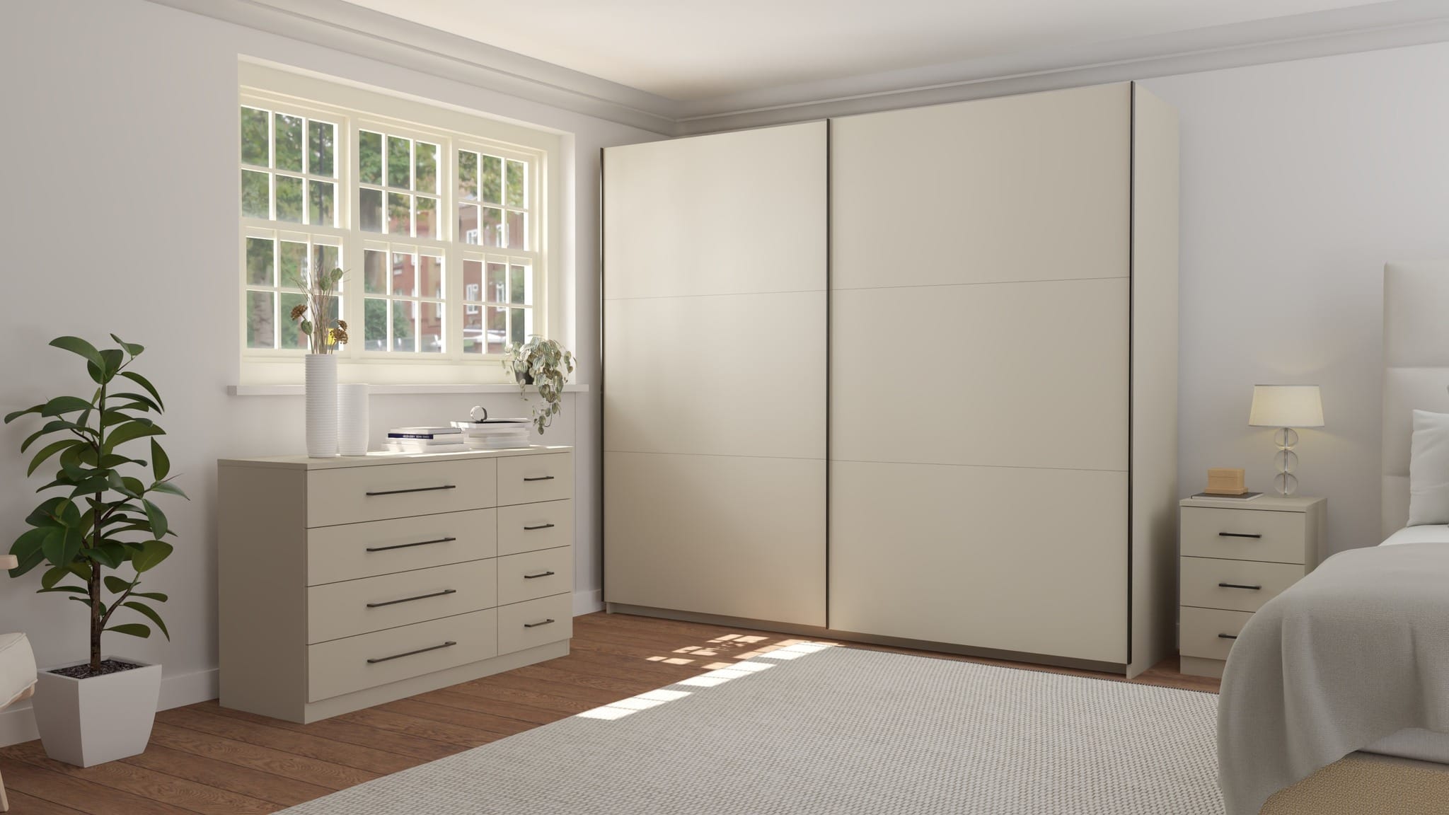 The range includes a selection of coordinated furniture, such as chests and wardrobes, allowing you to create a consistent look throughout your bedroom. The sliding wardrobe is available with a choice of door options, so you can tailor the design to suit your space and personal style.