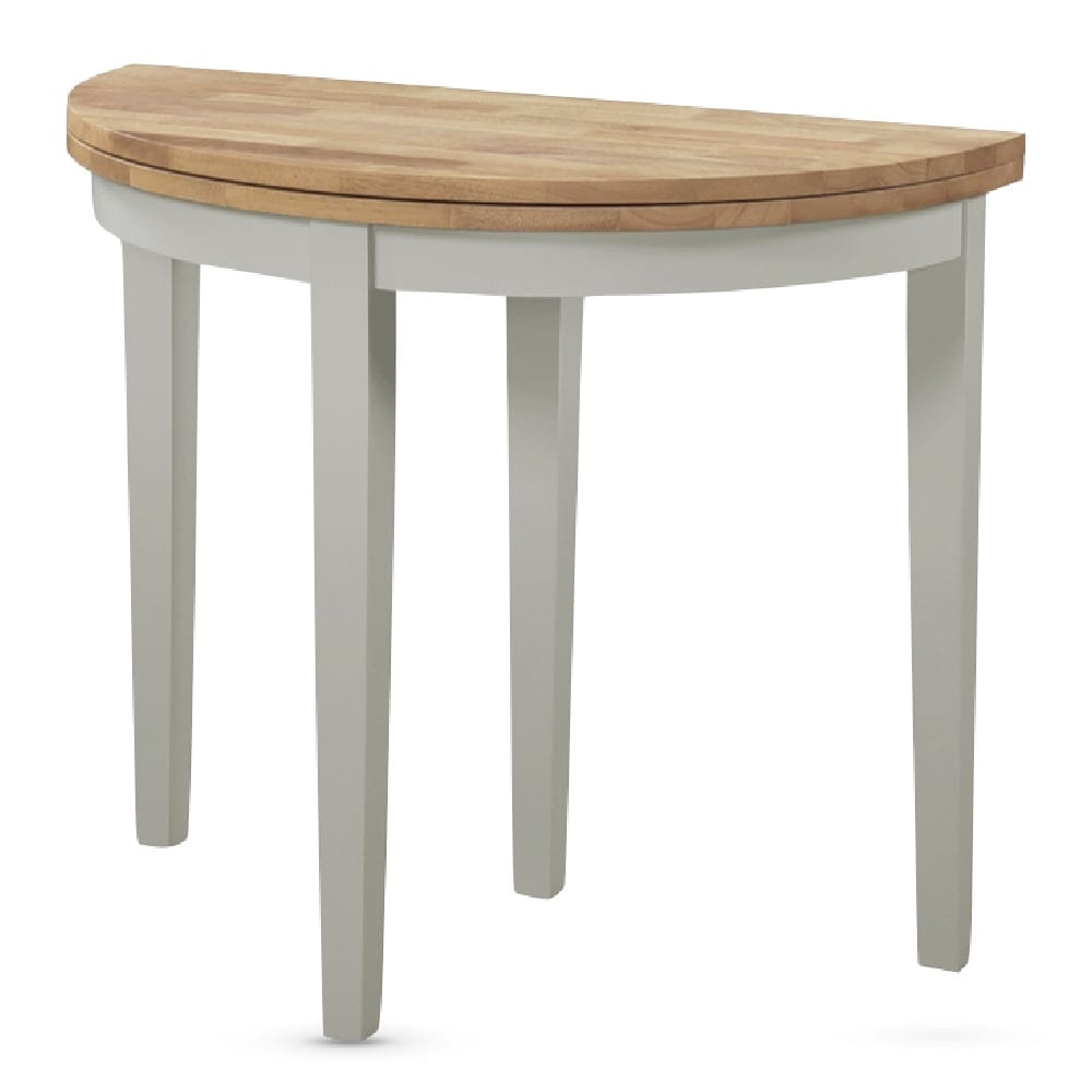 With its graceful semi-circular shape and stylish two-tone finish, the Altona Half-Moon table effortlessly blends classic oak tones with a soft grey base, creating a warm and welcoming look for any interior space. Perfect for smaller areas or adding decorative flair to a feature wall, this set up that comes with two matching chairs will be a great addition to any home.