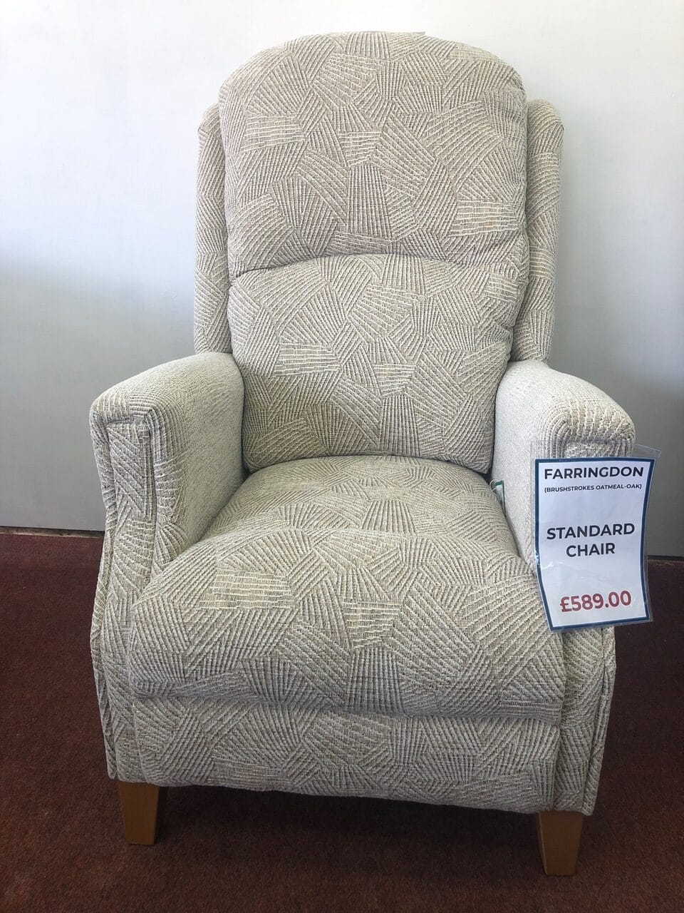 With deep fibre filled back cushions, pocket sprung seating as standard and an attractive tapered timber foot, the Farringdon has elegance and comfort in abundance. The chair offers great comfort & support, with slimline arms so you get a wide comfortable sit. It’s in a lovely neutral colour scheme which will look great in any living room.
